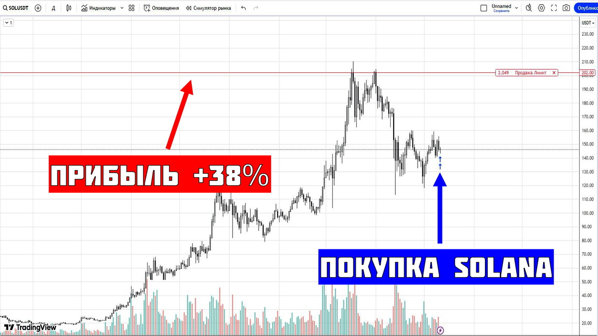 Обучение трейдингу и инвестициям по криптовалюте Solana SOL +38%
