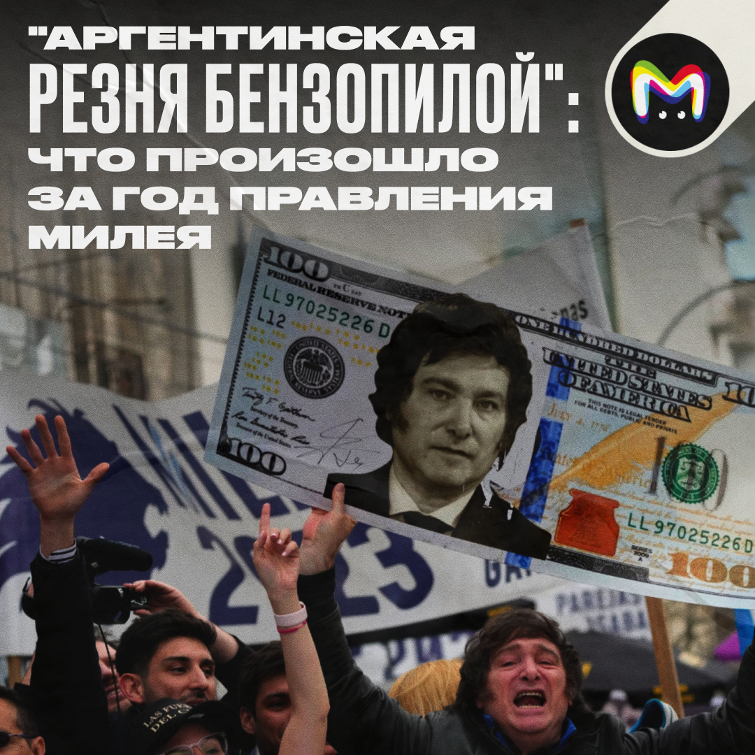Ровно год назад к власти в Аргентине пришёл Хавьер Милей — "анархо-капиталист", "кандидат с бензопилой", ярый трампист и просто очень экстравагантный мужчина. Он обещал вывести страну из кризиса и счастья всем-всем аргентинцам. Получилось? Смотрим. 100 лет назад Аргентина была одной из ведущих экономик мира. Но после серии дефолтов она подошла к выборам-2023 с инфляцией в 200% и уровнем бедности 49,5%. Хавьер Милей обещал экономическое чудо, а для этого принял ряд очень радикальных мер. Аргентинцы ему поверили. Перед выборами Милей обещал полностью отказаться от национальной валюты и Центробанка, который назвал "механизмом обмана хороших людей", и перейти на расчёты в американских долларах и биткоинах. Но спустя несколько дней после победы заявил, что вопрос о закрытии Центробанка "не подлежит обсуждению". Песо долларом не заменили, зато печатают нацвалюту теперь в Китае. Чтобы аргентинцы не таскали в кошельках кучу купюр, президент обещал печатать банкноты в 20 и 50 тысяч песо, увелич