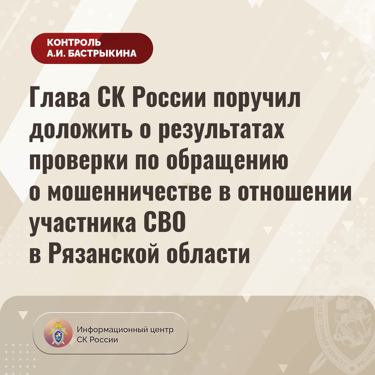 Глава СК России поручил доложить о результатах проверки по обращению о мошенничестве в отношении участника СВО в Рязанской области