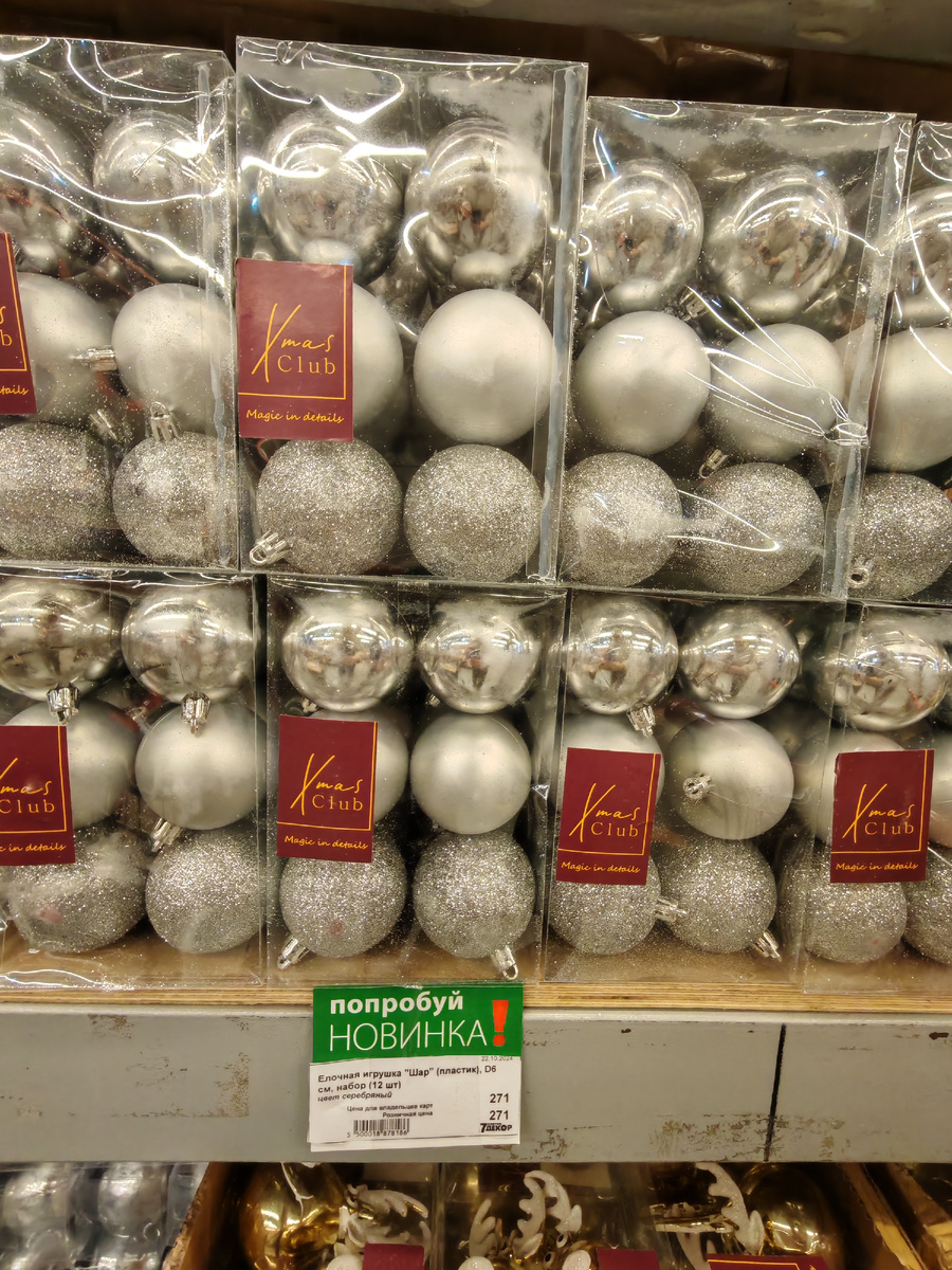 Джингл бэлз, друзья. Даже не верится, что Новый год уже через 1,5 месяца, и самое время уже начинать покупать подарки и готовиться к украшению новогодней ёлки. Я уже купила себе косметику к Новому году, позже покажу. Но на самом деле я не люблю Новый Год, потому что каждое 1 января я старею на год, и вот мне уже 36 лет. 😩 Но как подготовиться к праздникам и не разориться на новогодних украшениях? Я нашла целый склад с новогодними игрушками, и таких цен, как там, вы нигде не найдёте. Например, 12 елочных шаров шестого диаметра стоят на этом складе 271 рубль, в то время как на маркетплейсе за эти деньги можно купить только три шара подобного диаметра. Экономия на лицо. Сдаётся мне, именно тут закупаются те самые продавцы с маркетплейсов. Или вот на складе 144 шара диаметром 2,5 сантиметра продают за 1176 рублей. В то время как на маркетплейсе продают 64 шара такого же диаметра по цене в 5 раз выше. И таких примеров множество, всё дешевле в разы. На складе также есть шары из наст