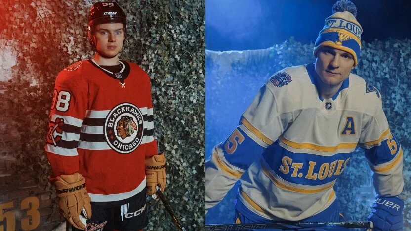 «Форма «Чикаго» отдает дань уважения богатому наследию «Блэкхокс» и в то же время привносит новые элементы дизайна. Джерси имеет классический воротник, дополненный винтажным кремовым цветом, который передает ностальгический дух эпохи Оригинальной шестерки. На эмблеме на груди изображены звезды с флага Чикаго.