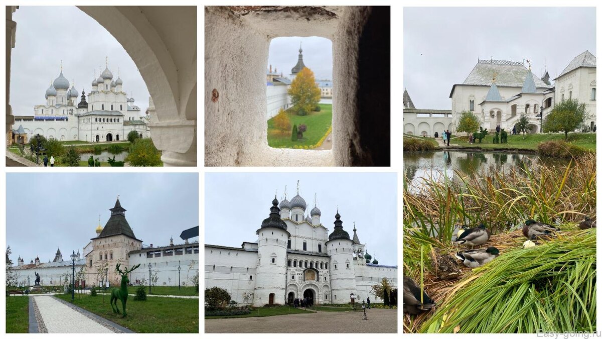 Если серьезно, то в вода озера содержит очень много железа, потому и не купаются люди. Зато в Неро водится рыба. Второй интересный факт - в Ростовском кремле снимали фильм "Иван Васильевич меняет профессию". А вот это уже похоже на квест! Я решила, что гуляя по кремлю, буду сопоставлять кадры из фильма с натурой. Это было весьма увлекательно! Ниже коллаж из моих фото, которые я сделала на территории Ростовского кремля и сопоставила с кадрами из легендарного фильма. Но самый запоминающийся момент из фильма, когда дружина Ивана Грозного сигает со стены, найти оказалось сложнее всего.