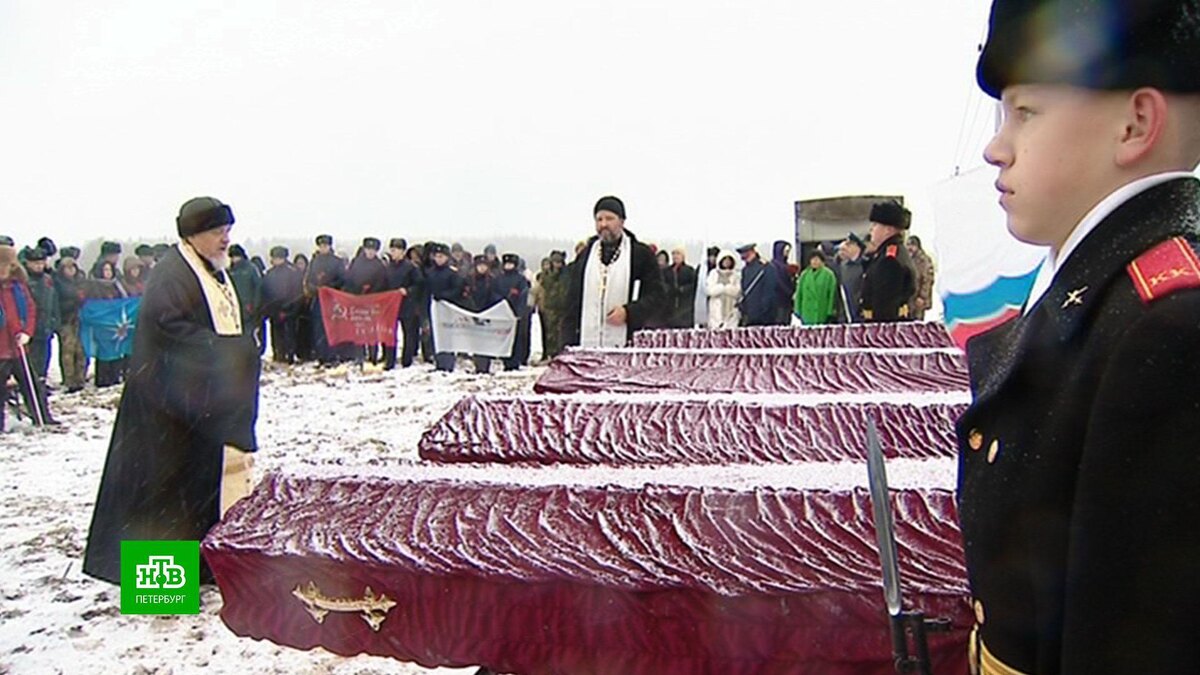 [ Смотреть видео на сайте НТВ ] С погибшими в пересыльном лагере времен Великой Отечественной войны простились сегодня в поселке Выра. В «Дулаге-140» под Гатчиной сотни мирных жителей и военнопленных находились с 1941 по 1943 годы. После войны их следы затерялись, и только в апреле 2023-го строители газопровода случайно наткнулись на массовое захоронение. В церемонии захоронения приняли участие чиновники, депутаты, представители епархии и, конечно, главные герои — представители более 10 поисковых отрядов. Полтора года они день за днем поднимали на поверхность найденные останки. Крупицу за крупицей собирали воедино то, что можно было собрать. Тяжелый, но благодарный труд. Сама церемония была недолгой. Прозвучали торжественные речи, после которых представители петербургской епархии отслужили заупокойную литию. Аэрофотосъемка подтвердила, что захоронения здесь массовые. Каждое состояло из нескольких братских могил, расположенных рядом друг с другом. Например, в одной находятся 12 человек,