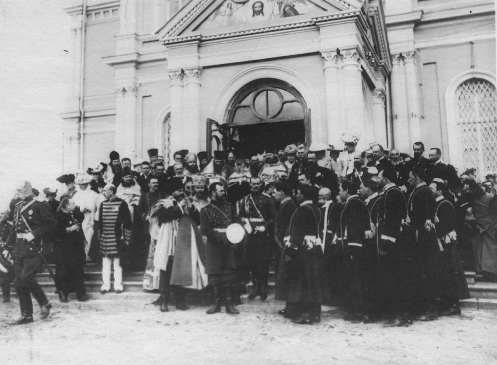 В открытом автомобиле с вокзала император направился в Казанский собор, где уже шло торжественное богослужение, в котором Николай II принял участие.