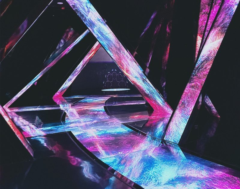 Описать это место как музей невозможно, он им не является. Приставка «музей» — маркетинговый трюк, так как точного названия для этого аттракциона пока не придумано. Некий иммерсивный опыт, который вы получаете в разных комнатах, где установлены огромные экраны. У них разнится разрешение, добирают пространство зеркалами, чтобы создать эффект объема.