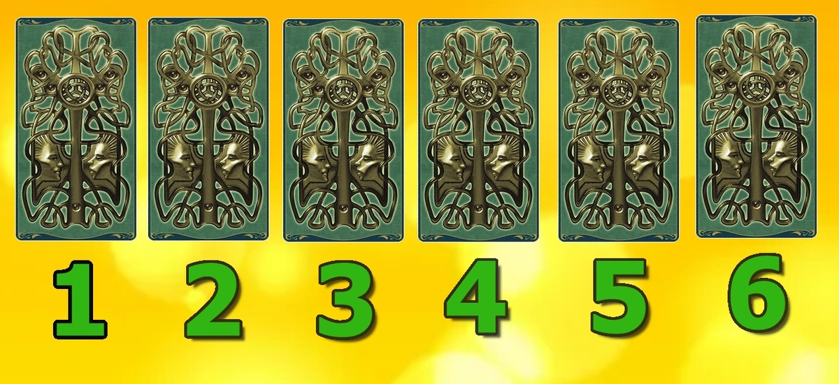 Затем выберите одну из предложенных карт. Сегодня я использую шесть позиций. Пожалуйста, прислушайтесь к своей интуиции и выберите карту, которая резонирует с вашим подсознанием.