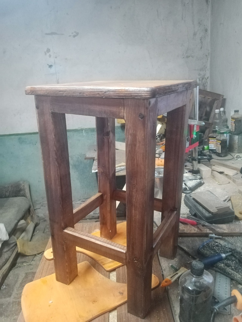 Изготовление мебели своими руками — это не только увлекательный процесс, но и способ создать что-то уникальное и полезное. Сегодня мы расскажем, как сделать простой, но прочный табурет из массива сосны. Эта работа под силу даже новичкам, а готовое изделие станет отличным дополнением интерьера. Для изготовления табурета вам понадобятся: Начните с замеров и распиловки древесины. Вам потребуются: Важно тщательно обработать края всех деталей наждачной бумагой, чтобы избежать заусенцев. Особое внимание уделите поверхности сиденья. Проверьте уровень — табурет должен быть устойчивым и не шататься. Положите сиденье на ровную поверхность и разместите собранное основание сверху, ровно по центру. Закрепите сиденье на ножках с помощью клея и саморезов. Совет: чтобы шляпки саморезов были менее заметны, утопите их в древесине и закройте древесной шпатлевкой или шкантами. После сборки пройдитесь наждачной бумагой по всему изделию. Используйте сначала крупнозернистую бумагу (80–100), а затем мелкозер
