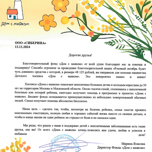 SIBERINA поддерживает благотворительный фонд «Дом с маяком»!