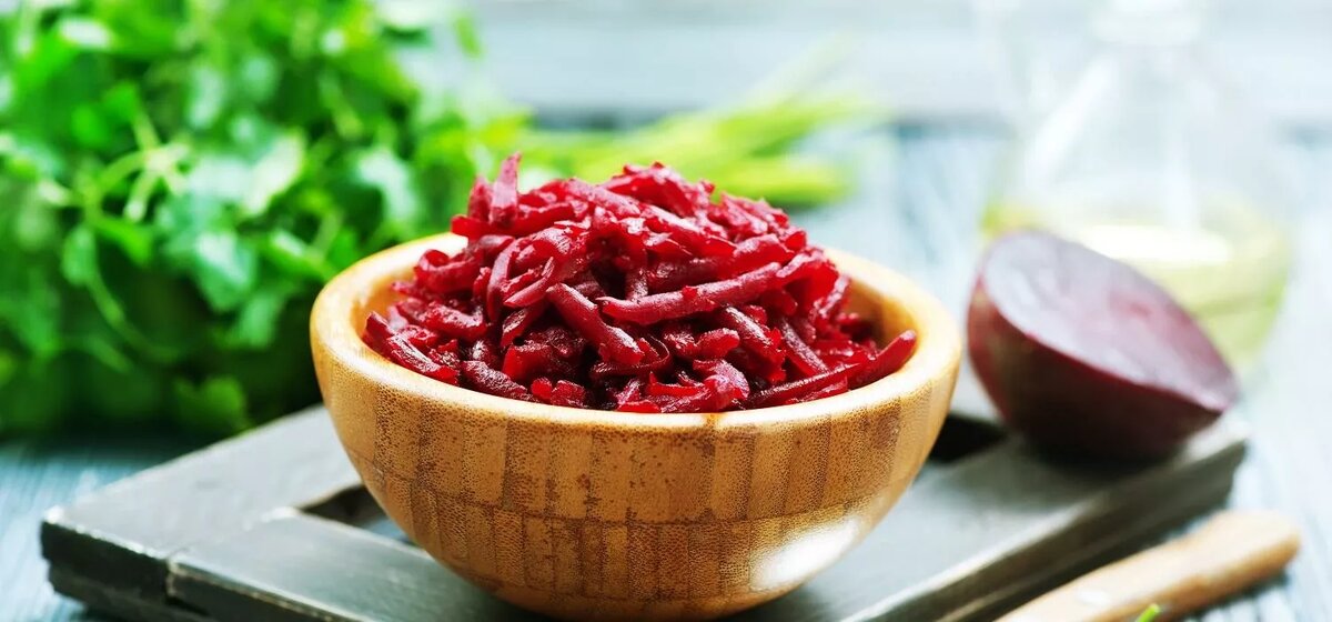 Шаг 3. Подготовьте свеклу тремя разными способами: одну часть измельчите на крупной терке, другую на мелкой, а оставшуюся — порежьте мелким кубиком.