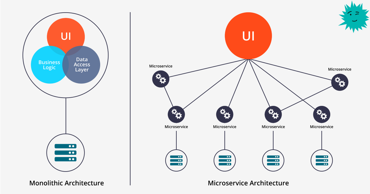 Каждый микросервис в этой архитектуре отвечает за конкретную функциональность и может взаимодействовать с другими сервисами через API (чаще всего RESTful или GraphQL). Эти сервисы могут быть написаны на разных языках программирования, использующие различные технологии и базы данных, что дает гибкость в выборе инструментов для разработки.