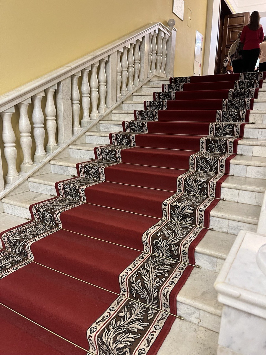 Чтобы отвлечься пока ждала, сфоткала лестницу, которая ведет в зал. Мне нравится наш театр, с детства люблю сюда ходить. Сначала с мамой ходила, теперь вот сама дочку привожу.