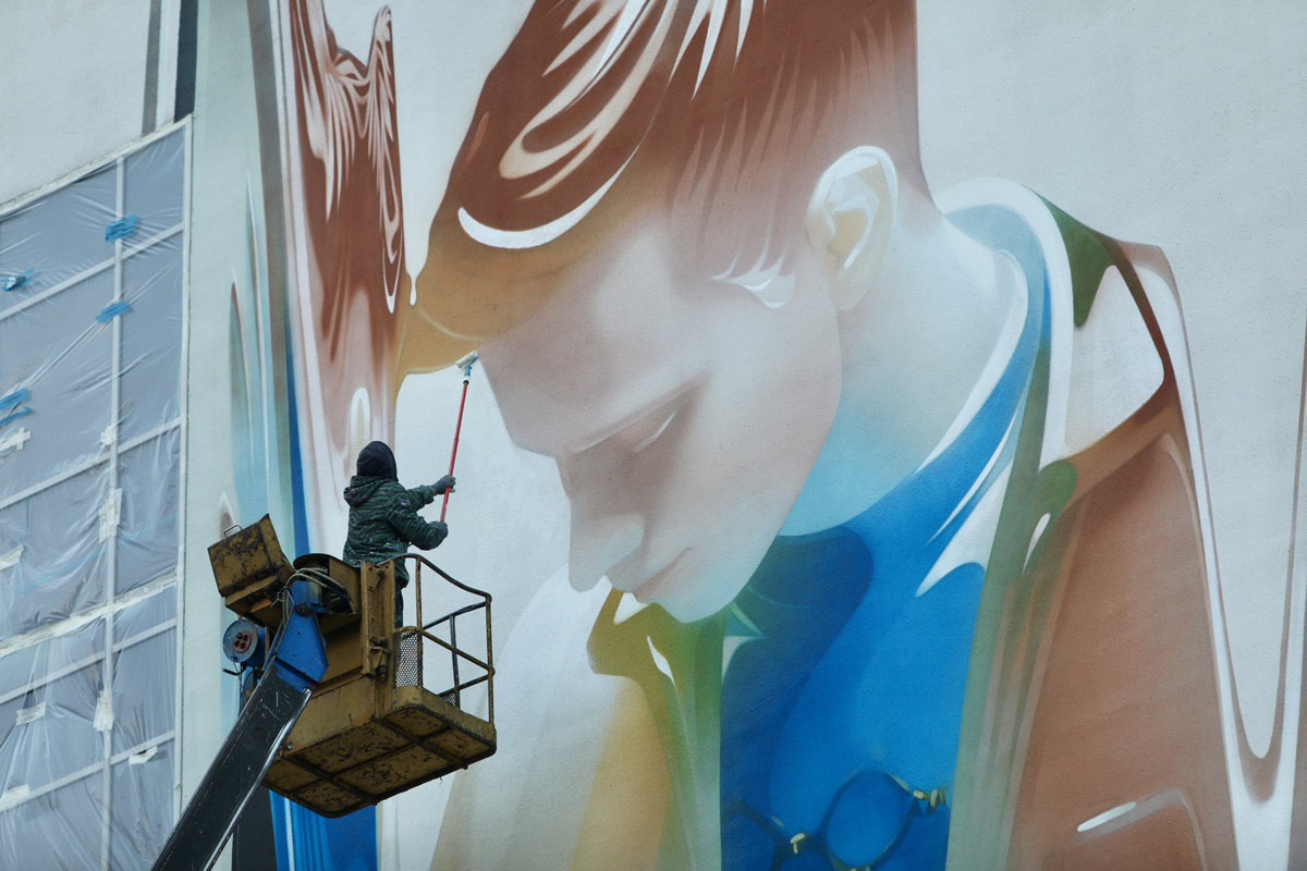 Александр думает, что в месте появления уличных работ формируется благоприятная среда — когда поблизости есть творчество, люди нередко вдохновляются им. Не упустите возможность увидеть это уникальное произведение — мурал «Сувенир» находится по адресу: улица Есенина, 36Б, стена делового центра Квадрум.
