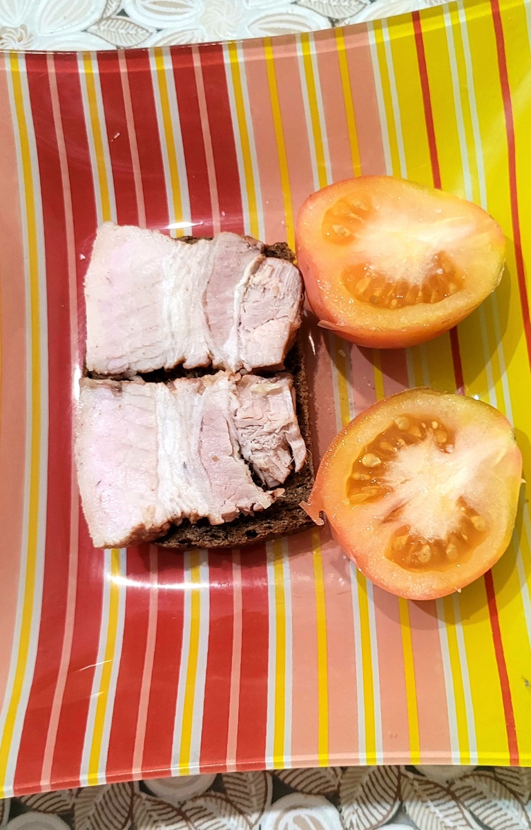 Сегодня мне захотелось на завтрак кроме каши съесть бутерброд из бородинского хлеба и засоленных в луковой шелухе свиных прослоек. Сделала два бутерброда. И решила узнать, какова же их калорийность. И пришла в ужас. 390 калорий. И, конечно же, я один бутерброд убрала и сразу же начала считать калорийность моего завтрака. И вот такая получилась калорийность. Молоко топлёное добавляла в кофе. Мне сынуля привёз очень много кофе разных сортов . Я утром всегда варю в турке. Без этого мой день не начинается. На перекус приготовила в микроволновке пирожное с бананом. А так как у меня сегодня внучка,то этой порции нам хватит на двоих. Вот такая калорийность моего перекуса. Йогурт я делаю сама. Так намного дешевле получается. Нагреваю молоко до температуры 50 градусов. На 700 гр банку добавляю одну столовую ложку с верхом ( как ложка зачерпнет) греческого йогурта . Укутываю и к батареи. Летом на солнечное место. Получается густой, не кислый йогурт. Заканчивается, делаю новый. И у меня в налич