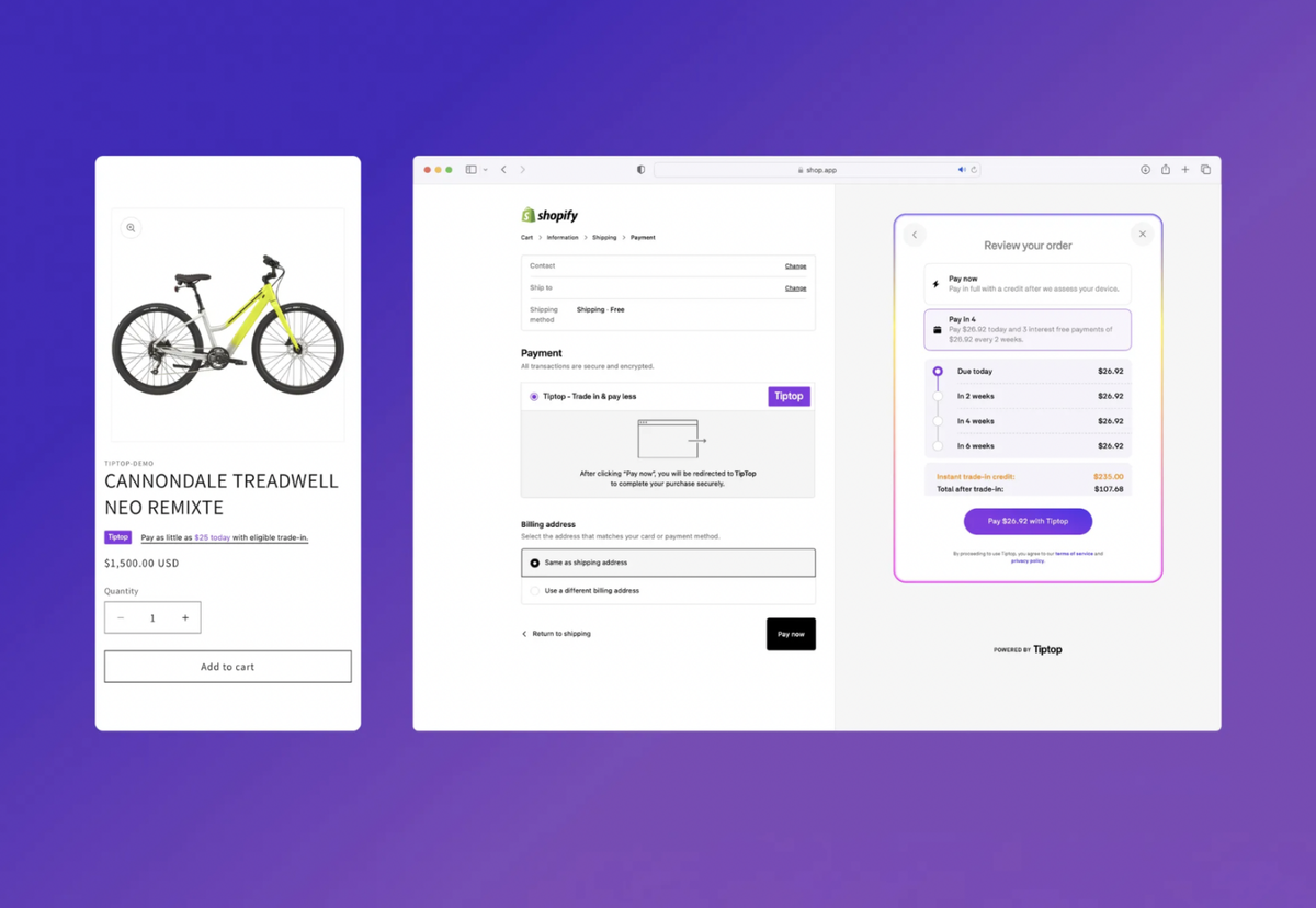 Tiptop - это инновационная платформа электронной коммерции, которая позволяет пользователям оплачивать онлайн-покупки, обменивая ненужные электронные вещи на новые. Приложение подключается к вашей почте Gmail и просматривает входящие сообщения в поисках чеков от онлайн-покупок, чтобы определить справедливую цену для обмена. На данный момент платформа принимает практически любые предметы размером не больше телевизора - от электронных устройств до товаров для дома. Процесс работы прост как дважды два: при оформлении покупки в интернет-магазине достаточно выбрать опцию оплаты через Tiptop. Система предложит указать устройство для обмена через выпадающее меню, где нужно выбрать бренд, модель и состояние товара. Затем Tiptop показывает сумму, на которую уменьшится стоимость новой покупки, благодаря обмену. Если предложенная цена устраивает, можно завершать сделку. У покупателей есть выбор: либо оплатить новую покупку полностью и получить частичное возмещение после того, как Tiptop получит