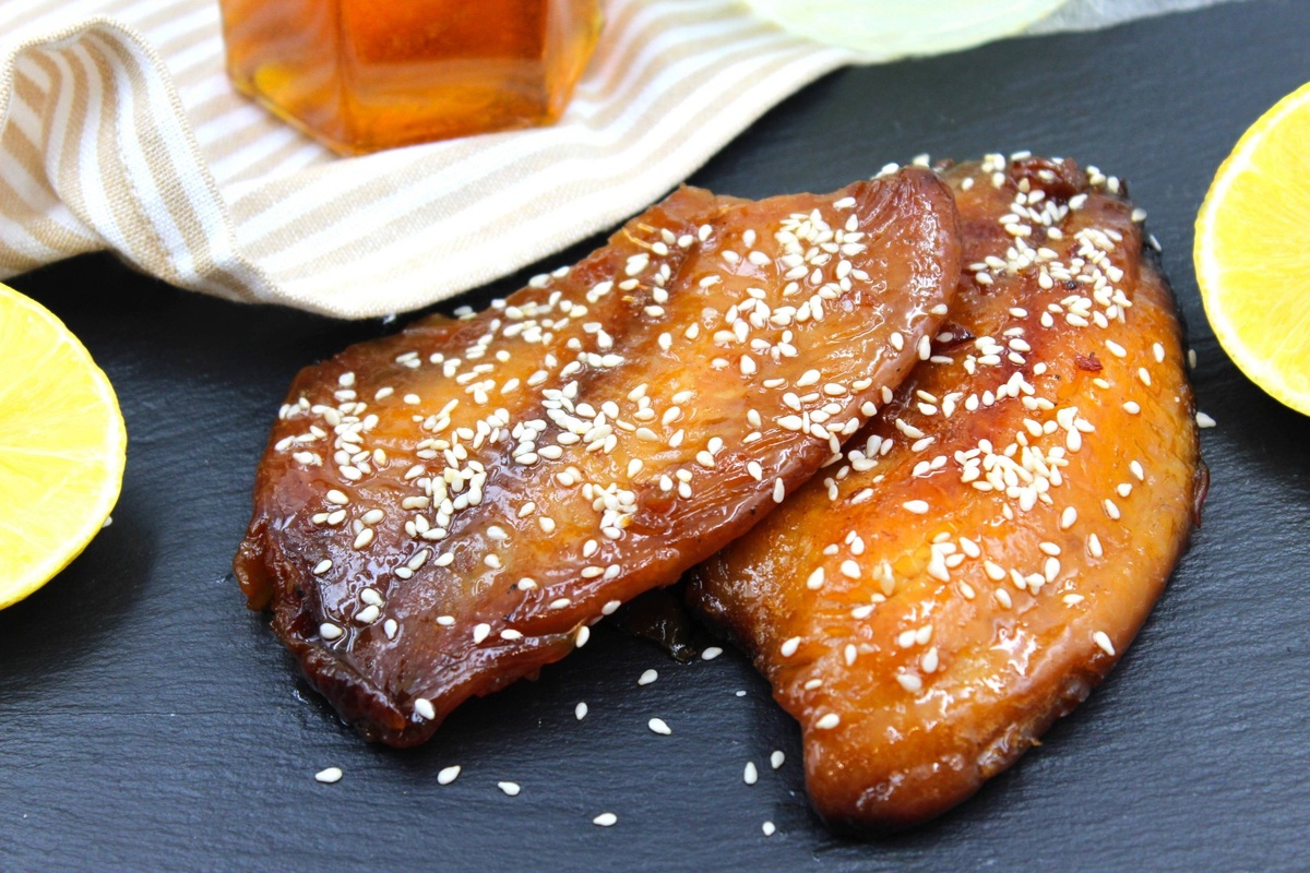 Филе окуня в медовой глазури с кунжутом — это вкусное и ароматное блюдо, которое сочетает в себе нежность рыбы и сладость мёда. Глазурь из мёда придаёт филе золотистый цвет и аппетитную корочку, а кунжут добавляет блюду хрустящую текстуру и приятный ореховый вкус. Ингредиенты: Приготовление: Филе окуня промыть, обсушить бумажными полотенцами и нарезать на порционные кусочки. В миске смешать мёд и соевый соус до однородности. Каждый кусочек филе обмакнуть в медово-соевом соусе и выложить на разогретую сковороду с растительным маслом. Жарить филе на среднем огне до золотистой корочки с обеих сторон, примерно по 5-7 минут с каждой стороны. Перед подачей посыпать готовое блюдо кунжутом. Приятного аппетита!