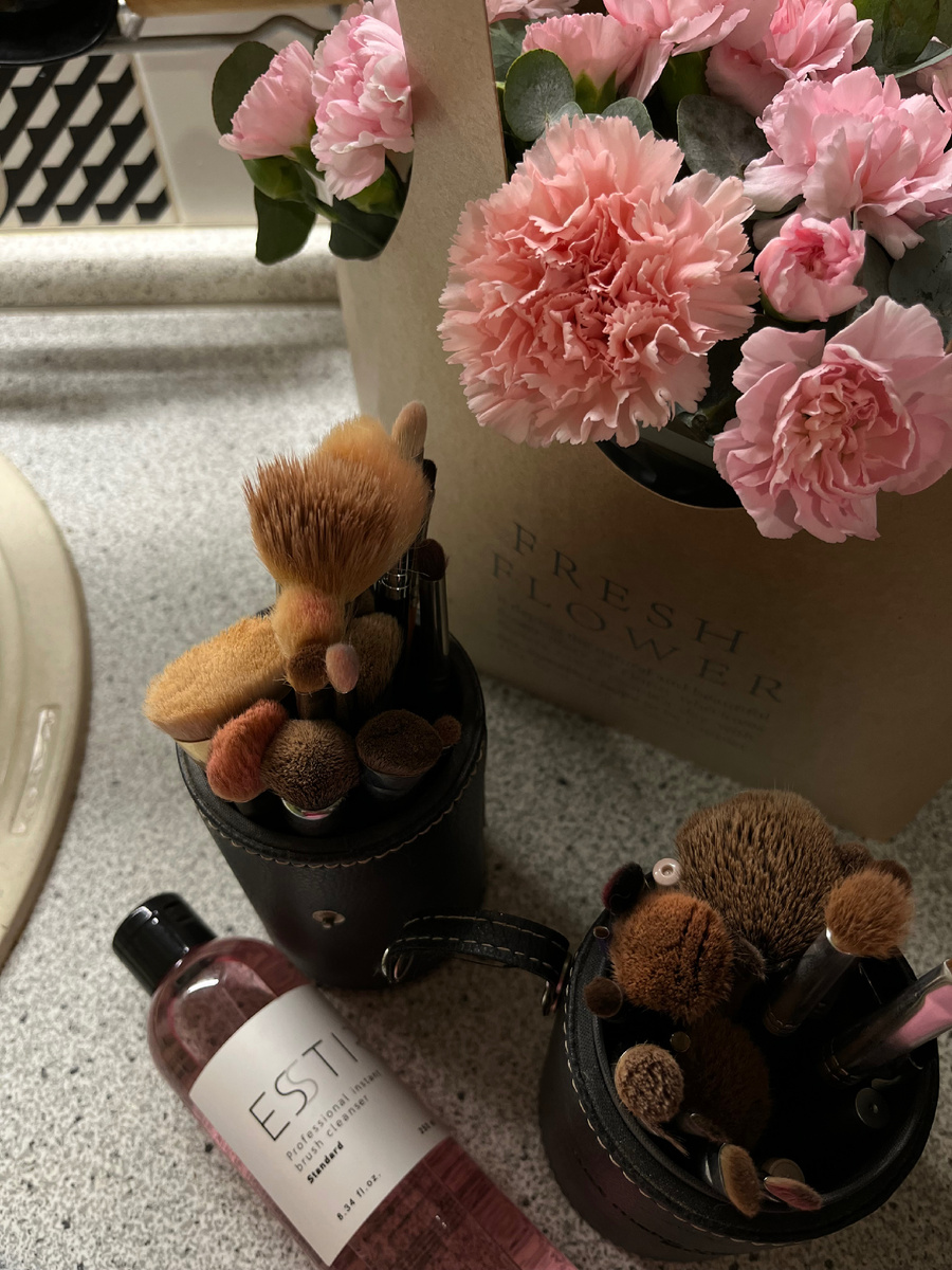 И не зря первое фото именно с кистями. Грязные кисти - это эпицентр бактерий. Особенно, если кожа склонна к высыпаниям, ты должна тщательно следить за чистотой кистей, спонжей и бьюти блендеров. Кисти для жидких и кремовых текстур необходимо мыть раз в неделю, для сухих по мере загрязнения или раз в месяц, бьюти блендер нужно мыть после каждого применения. Синтетические кисти я мою обычным мылом или мылом для кистей, натуральный ворс я мою шампунем. Многие даже используют кондиционер для своих кистей, чтобы наполнитель кистей оставался гладким и не торчал, но я не любитель, мою только шампунем. После того как я промою кисти проточной водой, пока не потечет прозрачная водичка, я обрабатываю каждую жидкостью для очищения кистей, затем даю высохнуть им на полотенце, желательно около 8-12 часов, и обязательно сушить вниз ворсом, придав форму волоскам. Тогда кисти будут служить вам долго и радовать каждый раз своим опрятным видом. Следи за чистотой наволочки. Постельное нужно менять раз