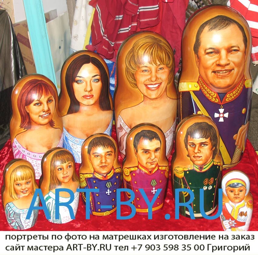что может быть лучше подарочной свадебной матрешки с портретами родителей и всех близких и родных в подарок на золотую свадьбу? Настоящий русский подарок, тотем русского народа матрешка с семейным портретом будет стоять в шкафу и радовать сердца папы и мамы, портреты внуков и детей весело смотрят на своих родителей.... Я предлагаю изготовление на заказ портретной матрешки с семейным портретом в подарок на годовщину свадьбы 50 лет вместе, этот подарок надо изготавливать , на его изготовление потребуется время, зато радости не будет конца...Моя мастерская находится в Москве метро Динамо, я так же изготавливаю работы для всей России и зарубежья пересылая их по почте, мой вацап и мой телефон +7 903 598 35 00 Григорий