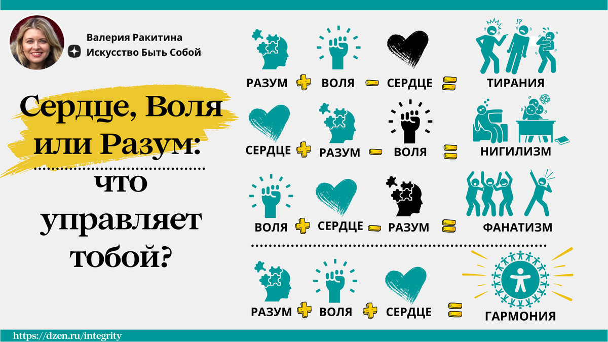 И постепенно, в течение жизни, через веру человек приходит к балансу и трех составляющих - сердца, разума и воли.