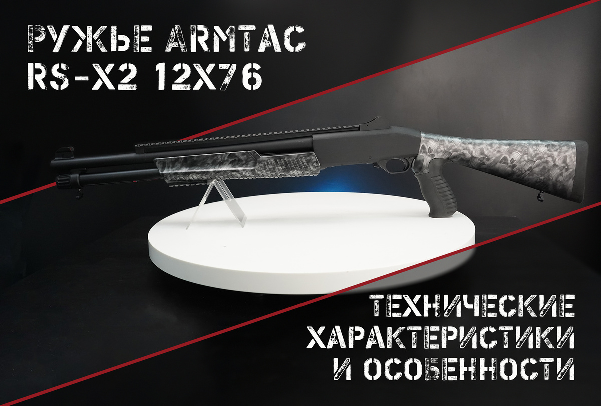 Ружье весит 2,9-3,1 кг без патронов. Выпускается с магазинами под 2, 5, 7 и даже 9 патронов, со стволами 510 мм и 470 мм. Затыльник и пистолетная рукоять выполнены из современных материалов и подходят не только для эпизодической развлекательной стрельбы, но и для постоянных занятий. Длина Armtac RS-X2 96 см или 100 см в зависимости от длины ствола.