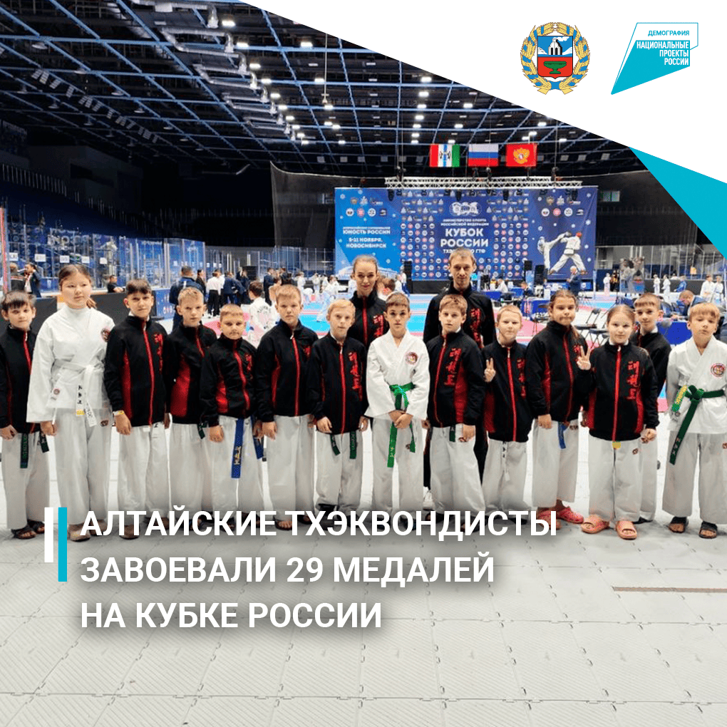 Алтайская команда завоевала 29 медалей, из которых 11 — золотые, 6 — серебряные и 12 — бронзовые. Кубок России: Юность России: Фестиваль цветных поясов: Высокие достижения спортсменов Алтайского края не только укрепляют позиции региона в тхэквондо на российской арене, но и мотивируют новых участников становиться частью большого спортивного сообщества. #нацпроекты22_ демография