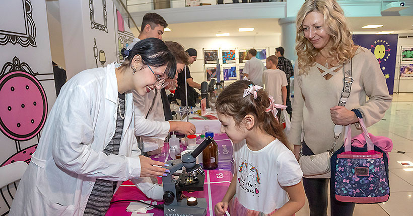 Главной площадкой стал концертный комплекс имени Маяковского. Здесь свои стенды представили десятки организаций: исследовательские институты, вузы, учреждения образования, высокотехнологичные предприятия и компании. Собравшиеся могли почувствовать себя настоящим супергероями и даже «силой мысли» поуправлять окружающими предметами. А ещё попробовать себя в роли геномного инженера и самостоятельно выделить ДНК банана или отправиться в виртуальное путешествие по загадочным уголкам вселенной. Студенты и преподаватели Новосибирского химико-технологического колледжа имени Д. И. Менделеева научили ребят тому, как приготовить знакомые каждому с детства лакомства. Правда, сделали это по-научному — с помощью молекулярной кухни, на которой без хорошего знания химии никак не обойтись. Эксперты рассказали и показали, где и как скрываются физика и химия при таком привычном процессе — приготовлении пищи.