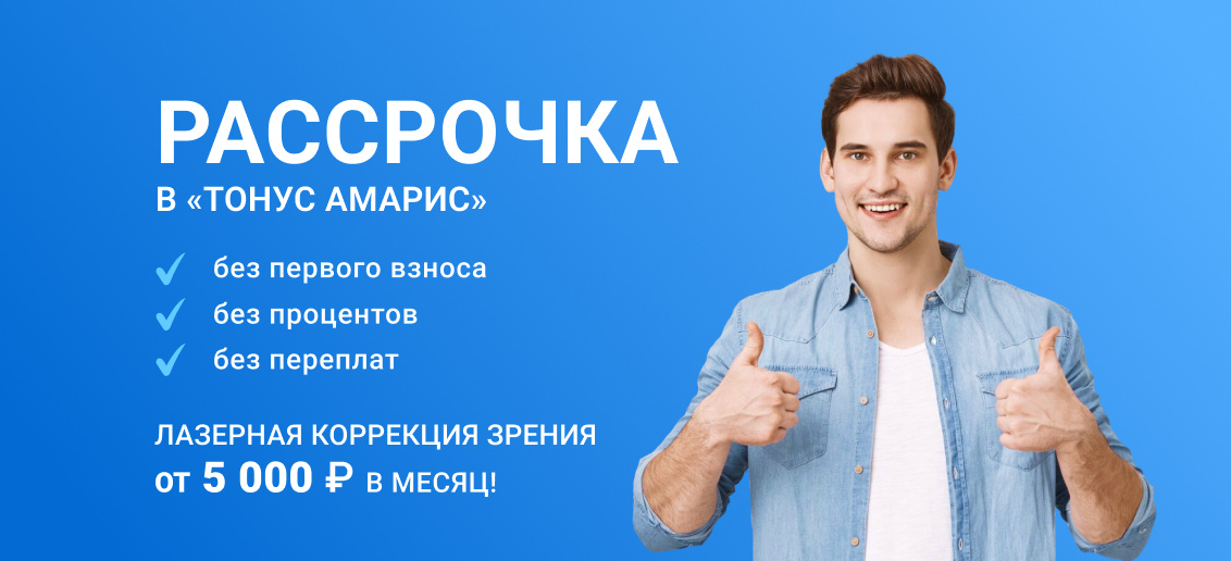 Таким образом, лазерная коррекция зрения, в зависимости от методики, при оформлении рассрочки, будет стоить от 5 тысяч рублей в месяц! Не отказывайте себе в удовольствии видеть окружающий мир на все 100%, а наши специалисты вам в этом помогут!