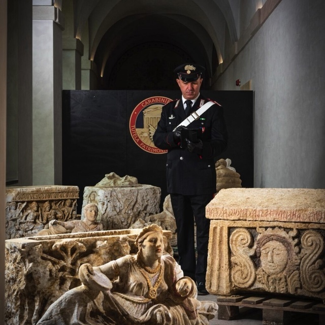 Итальянская полиция изъяла у чёрных копателей более 50 этрусских предметов, в том числе 8 каменных урн и 2 саркофага, датируемые III веком до н.э. Общая стоимость находки – восемь миллионов евро. Расследование началось в апреле этого года после того, как отдел культурного наследия карабинеров получил наводку о незаконных раскопках в коммуне Читта-делла-Пьеве. Фотографии больших погребальных урн с лежащими фигурами на крышках, типичных для этрусских погребений, появились на черном антикварном рынке. По стилю урн специалисты установили, что находки происходят из этрусского некрополя в районе Кьюзи. Расследование позволило сузить место нелегальных раскопок до подземной гробницы этрусского рода Пульфна, которую обнаружили в 2015 году, когда фермер наткнулся на неё во время вспашки поля (Не, ну на поле же не может быть археологических памятников, вы чо!). Тогда археологи нашли четыре урны и два саркофага, все принадлежавшие мужчинам. На некоторых из артефактов, продаваемых грабителями, выгр