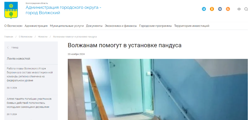 «08.11.2024 года в ООО УК «Инвест Волжский» направлен запрос на установку пандуса 6 подъезда многоквартирного дома No 49 по ул. Карбышева. По информации полученной от руководителя управляющей компании Барыкина А.Г., пандус в подъезде инвалида будет установлен в декабре 2024 года, пандус у подъезда данного дома будет установлен в марте 2025 года», — сообщили в пресс-службе администрации.