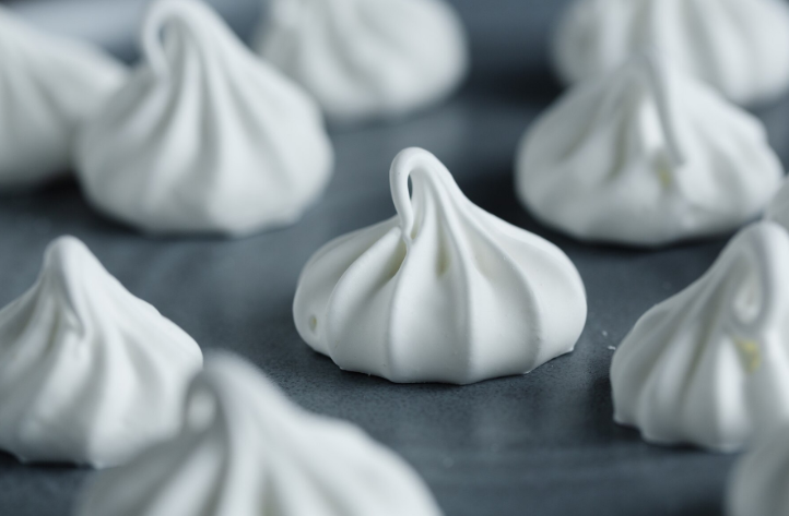 - Формирование безе: Разогрейте духовку до 100°C. Переложите белковую массу в кондитерский мешок с насадкой (или используйте ложку для формирования безе). На противне, выстеленном бумагой для выпечки, выложите небольшие кучки теста. Оставьте между ними достаточно места, так как безе немного разрастется в процессе выпекания.