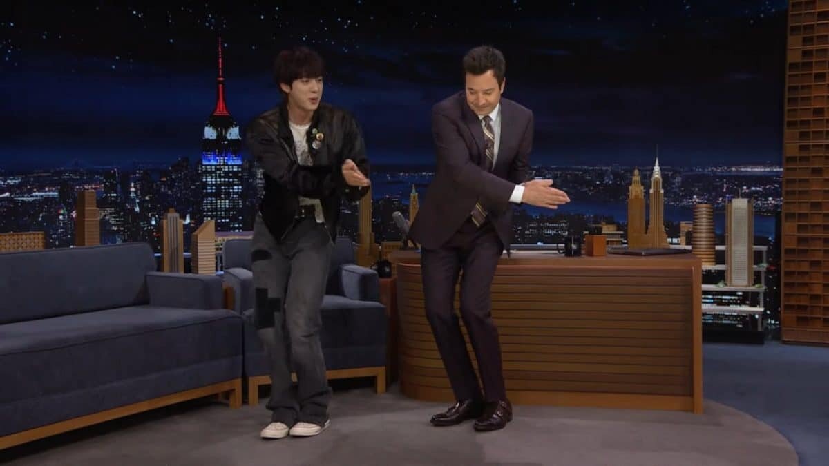 Джин из BTS научил Джимми Фэллона танцевать под «Super Tuna» и исполнил «Running Wild» на шоу The Tonight Show