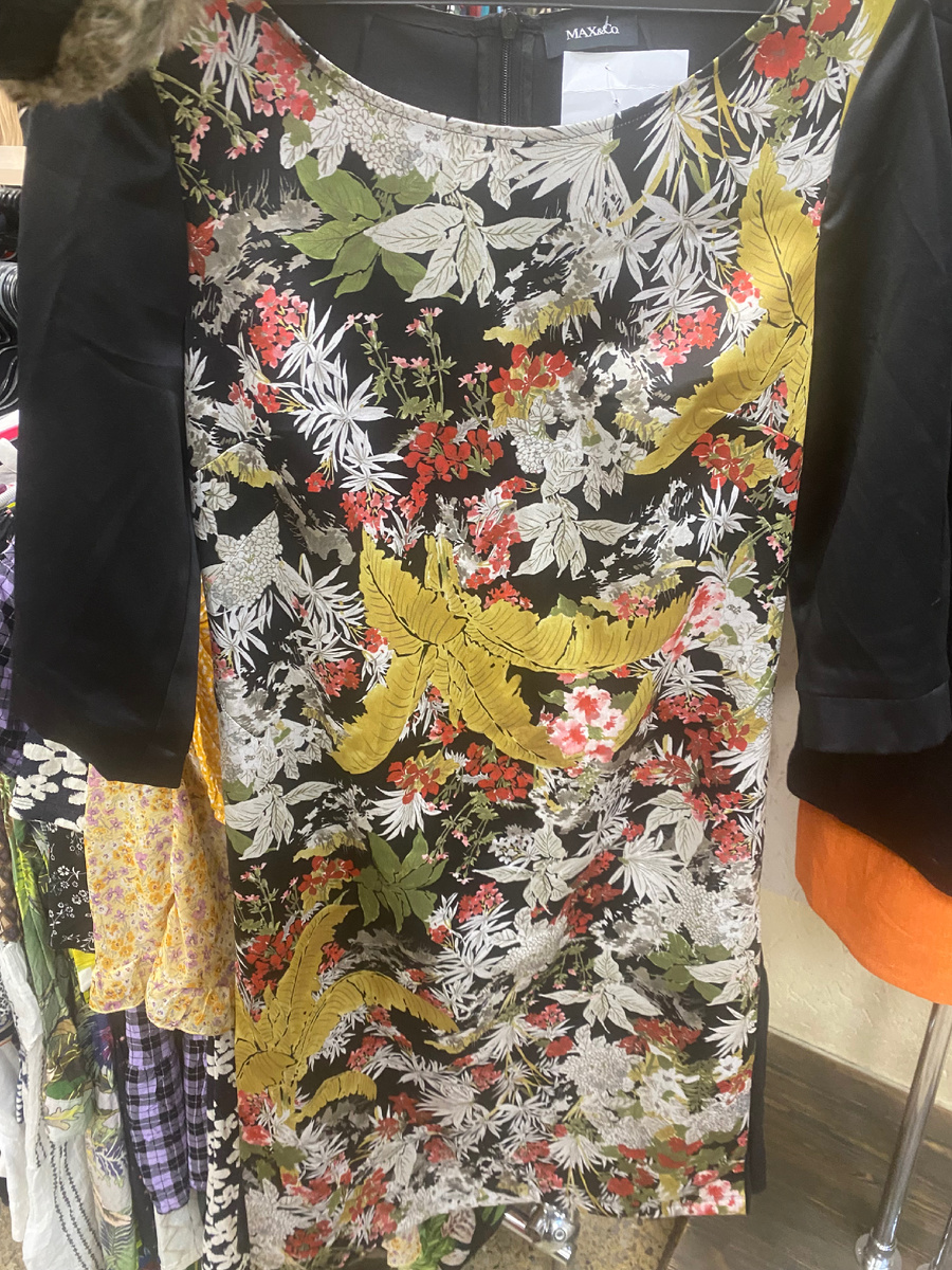 Привет)👋 В наших, любимых магазин поселилась несусветная тоска😭Ассортимент оскудел, и думаю, сто виноваты в этом европейцы. А потому что неfиг экономить на нас) Особенно это касается Мегахенда. Я, туды, практически не хожу, не вижу смысла перебирать вещи двадцатилетней давности. А их, надо сказать несметное количество. Консультанты говорят, что надо 4 тонны распродать.Похоже, что когда-то они купили недорогой товар, в надежде продать его, но не выгорело, так как народ стал привередливый. Им шелка др бренды подавай😉 Да были бы они хоть чуточку «с ноткой харизмы», разговор был бы другой, а так низкосортный ширпотреб, который пойдет только на коврики) Есть только местный, но достаточно хороший магазин, вернее сеть магазинов «Другая одежда», где еще можно что-то урвать. По божеским ценам и отличного качества. Вот туда мы и ходим, периодически) Платье в идеальном состоянии от бренда Max&Co В боковых швах полупрозрачные вставки. Спинка и рукава черные, однотонные. Рукав укороченый