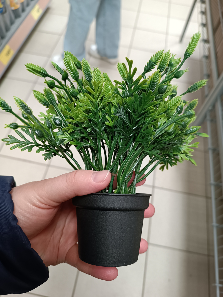 А вот, декоративная зелень в горшочках появилась.
