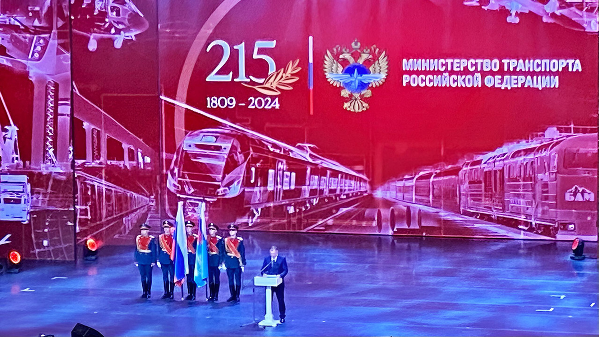 В День работника транспорта в Государственном Кремлёвском дворце состоялось праздничное мероприятие – торжественный вечер, посвящённый чествованию передовых работников транспортного комплекса в ознаменование 215-летия транспортного ведомства и транспортного образования.