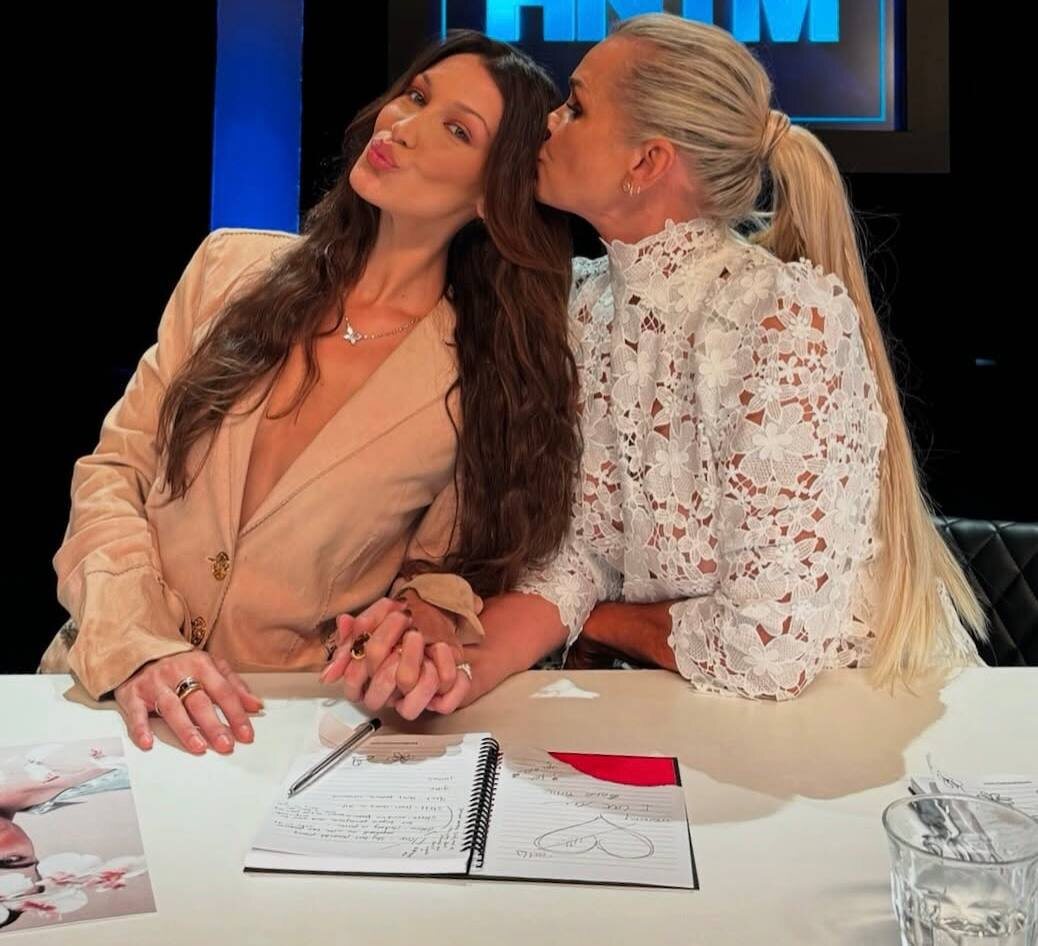 Фотографии были сделаны в то время, когда Белла работала над Holland’s Next Top Model. «Наблюдать за работой моей мамы и быть второй мамой для нового поколения молодых творческих людей — это такое благословение для меня!» — написала она, подразумевая то, что Иоланда является судьей шоу.