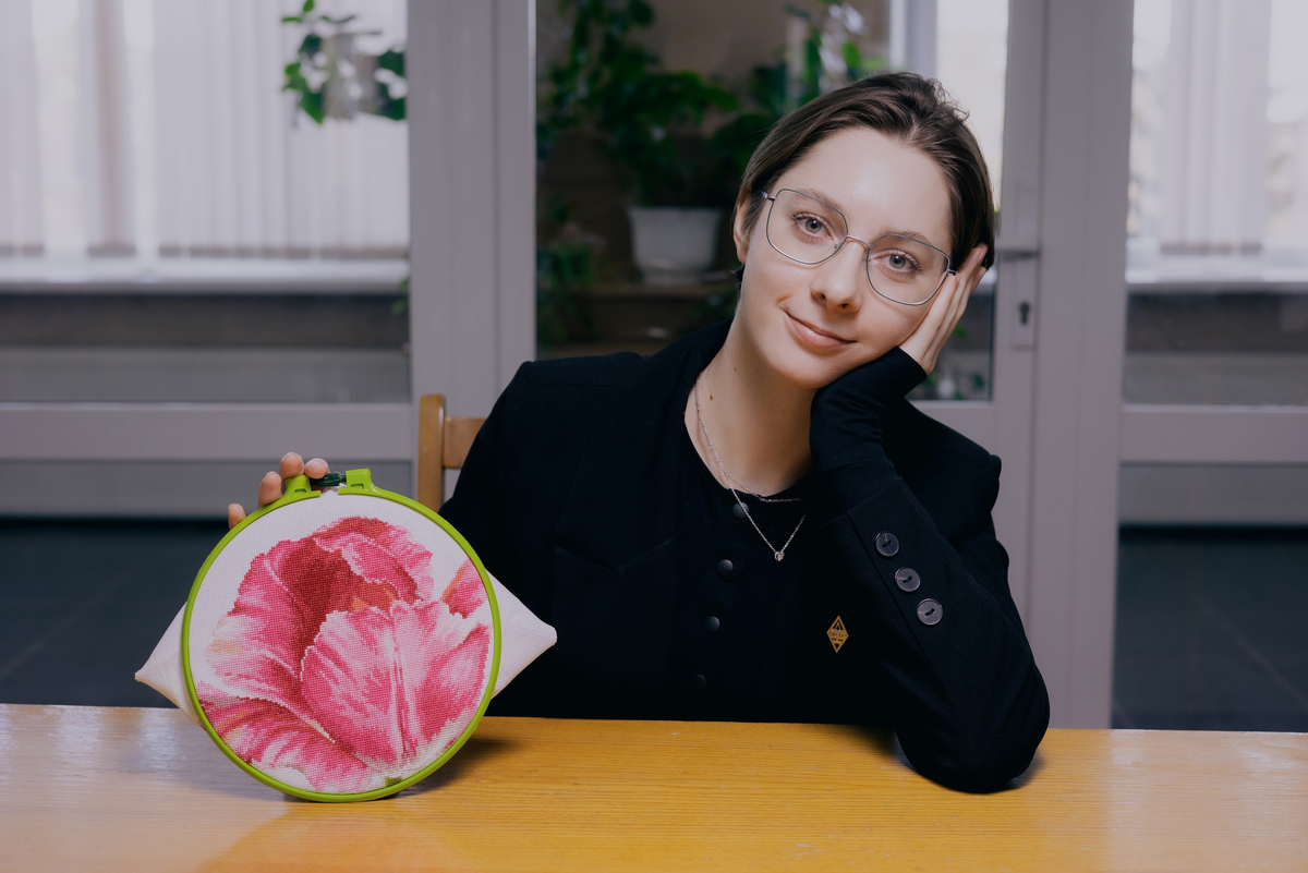 Анна Евгеньевна Козлова — аспирант, ассистент кафедры вычислительной техники и программирования. Работаю в университете почти пять лет, три из которых являюсь преподавателем. Очень нравится быть преподавателем, так как я преподношу будущим специалистам новые знания, которые они будут использовать в своей сфере. Ну и, конечно, это большая возможность развиваться самому, например, получать какой-то опыт от самих студентов, которые могут иначе видеть подход к решению поставленной перед ними задачи, возможность развиваться в научной деятельности. Это увлечение у меня появилось ещё со школы, с занятий труда. Наверное, это класс 5 или 6. Поэтому можно сказать, что давно увлекаюсь вышивкой.