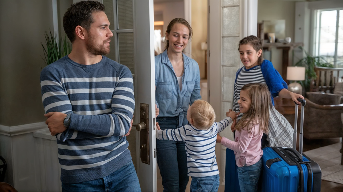 Алина почувствовала, как все взгляды устремились на нее. Близнецы Костя и Коля уже носились по коридору, размахивая игрушечными самолетиками. Трехлетняя Маша крепко держалась за юбку матери и хныкала.
