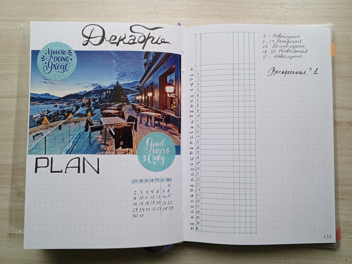 Добрый день, друзья! Я оформила последний месяц в своем ежедневнике. Титульный лист с трекером и первым воскресным днем: Вторая неделя: Третья неделя: Решила помимо недельной разметки оставлять немного места для дневниковых записей. Четвертая неделя: И последние дни года с описанием новогоднего торжества: Это мой второй полностью законченный блокнот. Теперь можно переключиться на оформление буллета на 2025 год. Спасибо, что вы со мной! Желаю радостного и счастливого декабря! 🎄