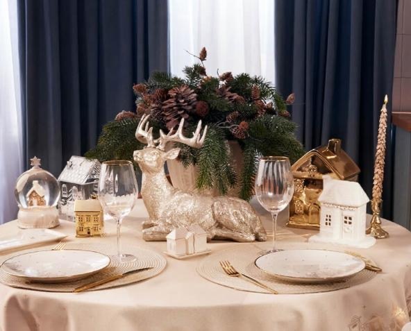 Вверху блюдо Лошадь с подарком -31*18 см. Внизу две тарелки из коллекции Ель с подарком: обеденная тарелка 25 см, закусочная тарелка - 20 см.