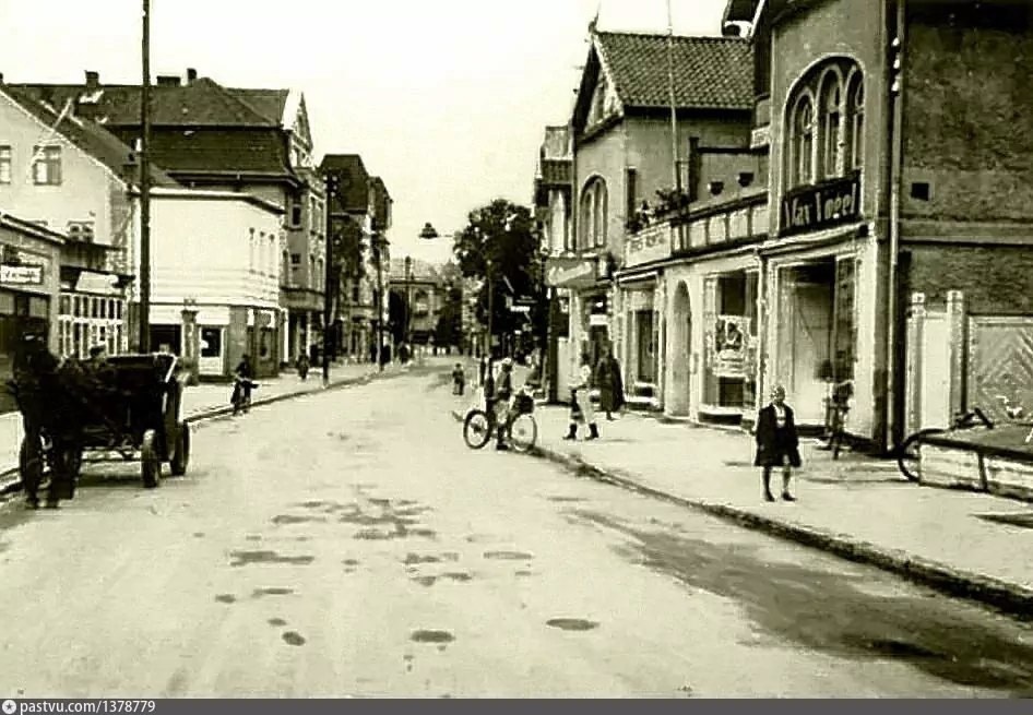 Дом находился по адресу Königsbergerstraße 33. Это был жилой дом с магазинами: здесь располагались в разное время мясная лавка Макса Вогеля (на фото как раз можно видеть вывеску Max Vogel), магазин аптекарских товаров (вывеску Ostsee Drogerei видно на следующем фото, владелец Карл Шлихт). Это, кстати, моя находка из Бильдархива. В Бильдархиве фото датировано 1910-1919 гг. Вероятно это все - таки 1910 год, так как еще не видно обновленного здания Rotheshaus c универмагом Штернфельда. На первом фото это здание уже видно, если внимательно присмотреться в самой глубине улицы. Из адресной книги 30-х годов мы узнаем, что владелец дома вышеупомянутый Макс Вогель. Кроме него в доме еще числится 14 человек, включая Карла Шлихта. И яркое фото здания советского периода с цветником на переднем плане. В 1996 году здание, к сожалению снесли, сейчас на его месте здание Сбербанка. И недавно здесь же открылся Amber shore отель. 2 недели назад мне провели небольшую экскурсию по отелю, если инте