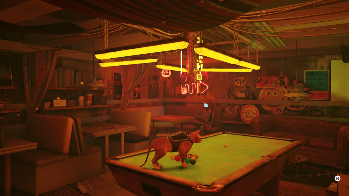 По итогам последнего стрима оказалось, что Stray на Nintendo Switch далеко не так плох, как многие боялись. Что понравилось: даунгрейд графики явно производился вручную — разработчики не просто равномерно всё ухудшили, как в плохих портах, но принимали решение, какие именно текстуры и объекты стоит «порезать» сильнее, а какие оставить более детализированными. Поэтому, например, текстуры мусорных баков, некоторых дверей и стен имеют крайне низкое разрешение, а персонажи, объявления на стенах, даже ковры и прочие элементы украшения интерьера — относительно высокое.