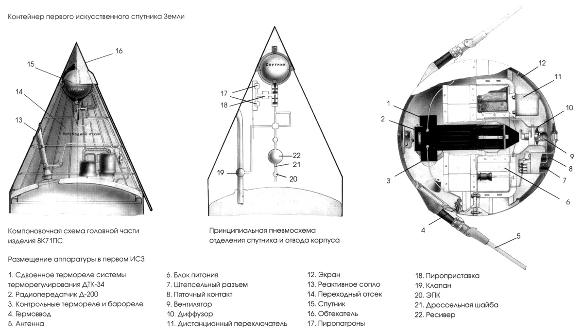 «Спутник-1» был металлическим шаром диаметром 58 см и весом около 83,6 кг. Он был оснащен четырьмя антеннами и передавал радиосигналы. Это событие стало настоящей сенсацией, как для научного мира, так и для широкой публики. Он был запущен с помощью ракеты Р-7, которая была первоначально разработана для военных целей. Запуск Спутника-1 открыл новую эру в освоении космоса и положил начало космическим исследованиям.