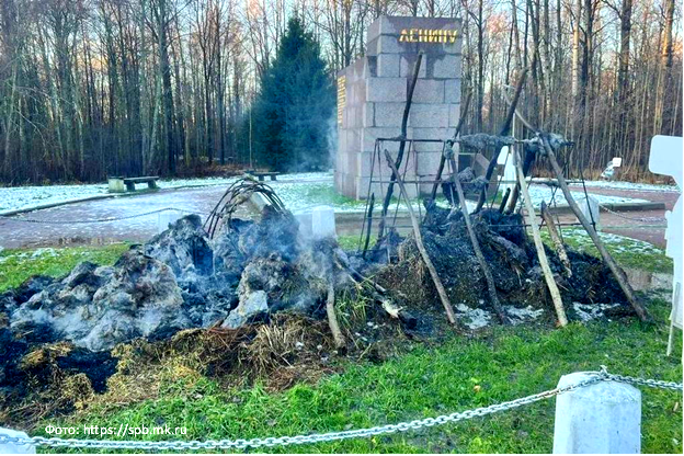 После пожара от шалаша Ленина под Петербургом остались металлический каркас и несколько палок