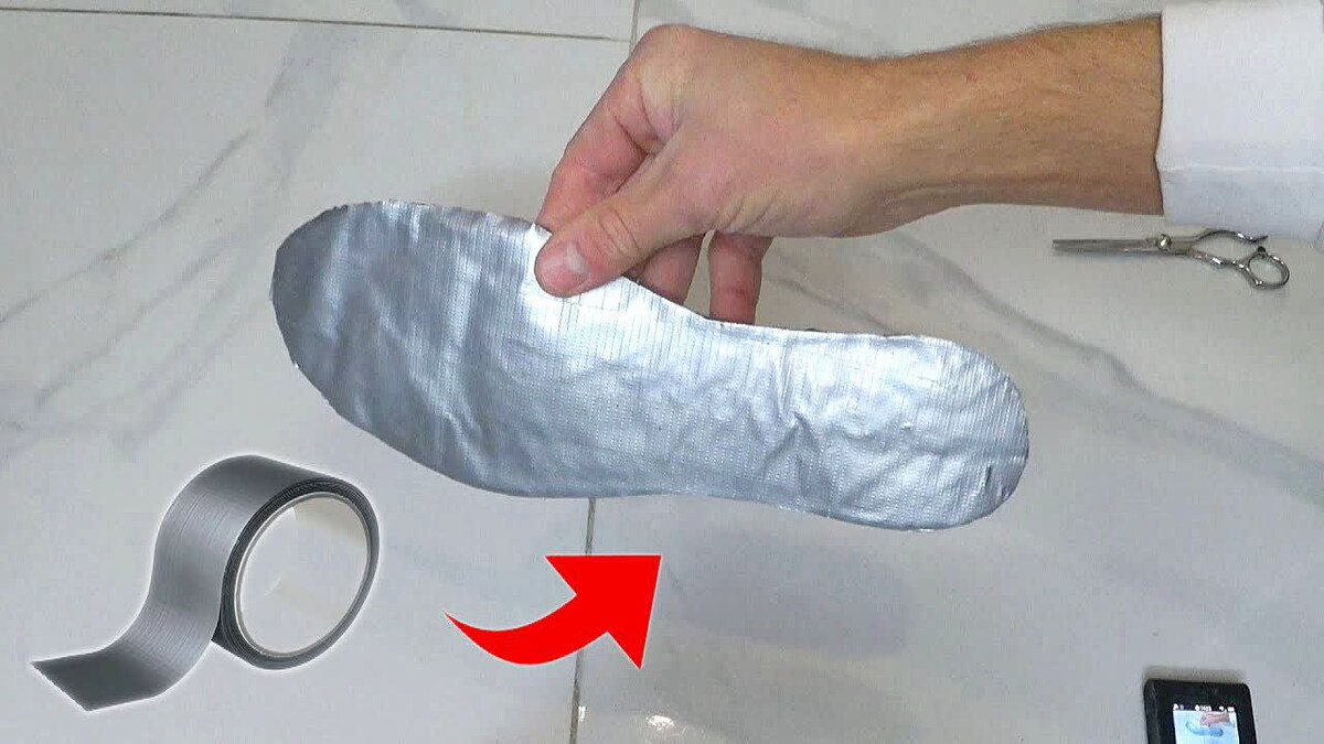 Сегодня у меня для вас интересное, информативное и полезная статья. Зима на дворе, холода. И когда вы гуляете или долго находитесь на улице в морозную погоду, замерзают ноги. Почему же это происходит? Все очень просто. Холод поднимается через резиновую подошву. Ноги, которые должны быть в тепле, начинают замерзать. Естественно, замерзает весь организм. Чтобы этого избежать, сегодня я покажу, что нужно сделать. У меня есть вот такие кожаные ботинки. В них есть стельки, которые вытягиваются. Вытягиваем стельки. Они могут быть у вас проклеены бумагой или еще каким-нибудь материалом. Это не важно. Нужно, чтобы они были сухие. Вытрясти их, почистить. Дальше нам понадобится вот такой армированный скотч. Он продается в строительных магазинах. Этот скотч используют и на крышах, используют при утеплении труб. На крышах это парабарьер. И чтобы сделать плотное соединение, которое не будет пропускать влагу, используют этот скотч. В нем есть нитка, и он очень крепкий. Ну и естественно, он не бу