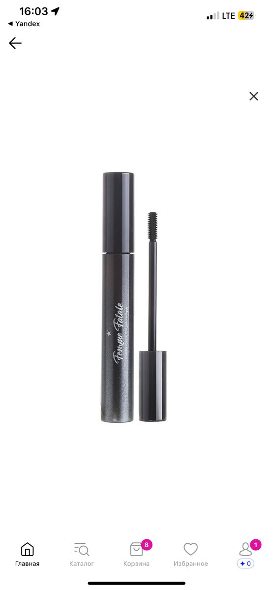 Тушь для ресниц от ЛЭТУАЛЬ Femme Fatale на обзоре. Упаковка в защитной пленке, туба из пластика объемом 8 мл, смотрится стильно. Только со временем облазит. Но, главное-это щетка, она очень маленькая, больше похожа на щетку для бровей, силиконовая. Очень удобно подлезать в уголки, у основания и прокрашивать нижние ресницы. Круто прокрашивает и подкручивает ресницы, эффект распахнутого взгляда. Надо чуток подождать после открытия, чтобы она немного подсохла, тогда результат отличный. Это больше не про удлинение, а про прокрашивание каждой реснички, за счет этого объем. Никаких неприятных ощущений в носке, не щиплет, не раздражает. И еще, тушь рекомендую наносить в один, максимум два слоя-если больше-будет «эффект лапок паука». Рекомендую к покупке✅, может не всем подойдет, надо пробовать, скорее всего не понравится тем, у кого редкие и длинные ресницы. Я брала в Летуаль, ее периодически снимают с продажи. Так что если увидите-берите.