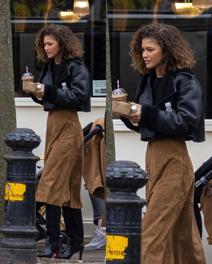Зендея — одна из самых стильных актрис современности, чьи образы всегда привлекают внимание как на красных дорожках, так и в повседневной жизни. Обладательница множества наград и муза модных брендов, она отличается отличным умением сочетать классику с актуальными трендами. На недавнем фото Зендея предстала в непринужденном, но в то же время утончённом образе, который идеально подходит для прогулки по городу в осенний сезон. Поэтому в этой статье мы подробно разберём ключевые элементы её наряда и расскажем, как повторить этот образ, найдя их в ТРЦ «Акварель». 1. Укороченная куртка Верхняя часть образа — стильная укороченная куртка. Этот элемент добавляет образу структуры и современного характера. Чёрный цвет и материал с матовой текстурой делают куртку универсальной и выразительной.