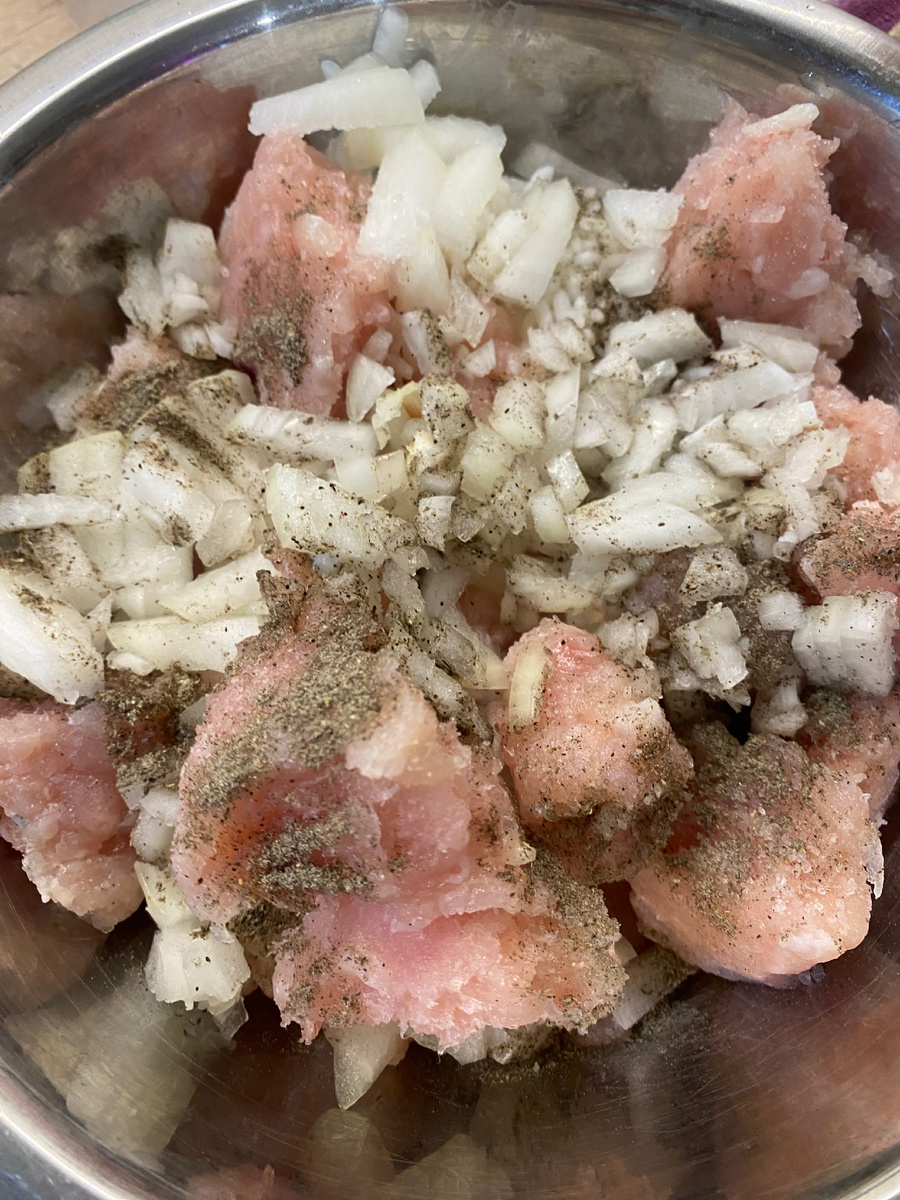 Фарш куриный и маловато, риса у меня больше будет в начинке, но для мамы самое то, капусту может не есть, а вот начинка будет вкусная.