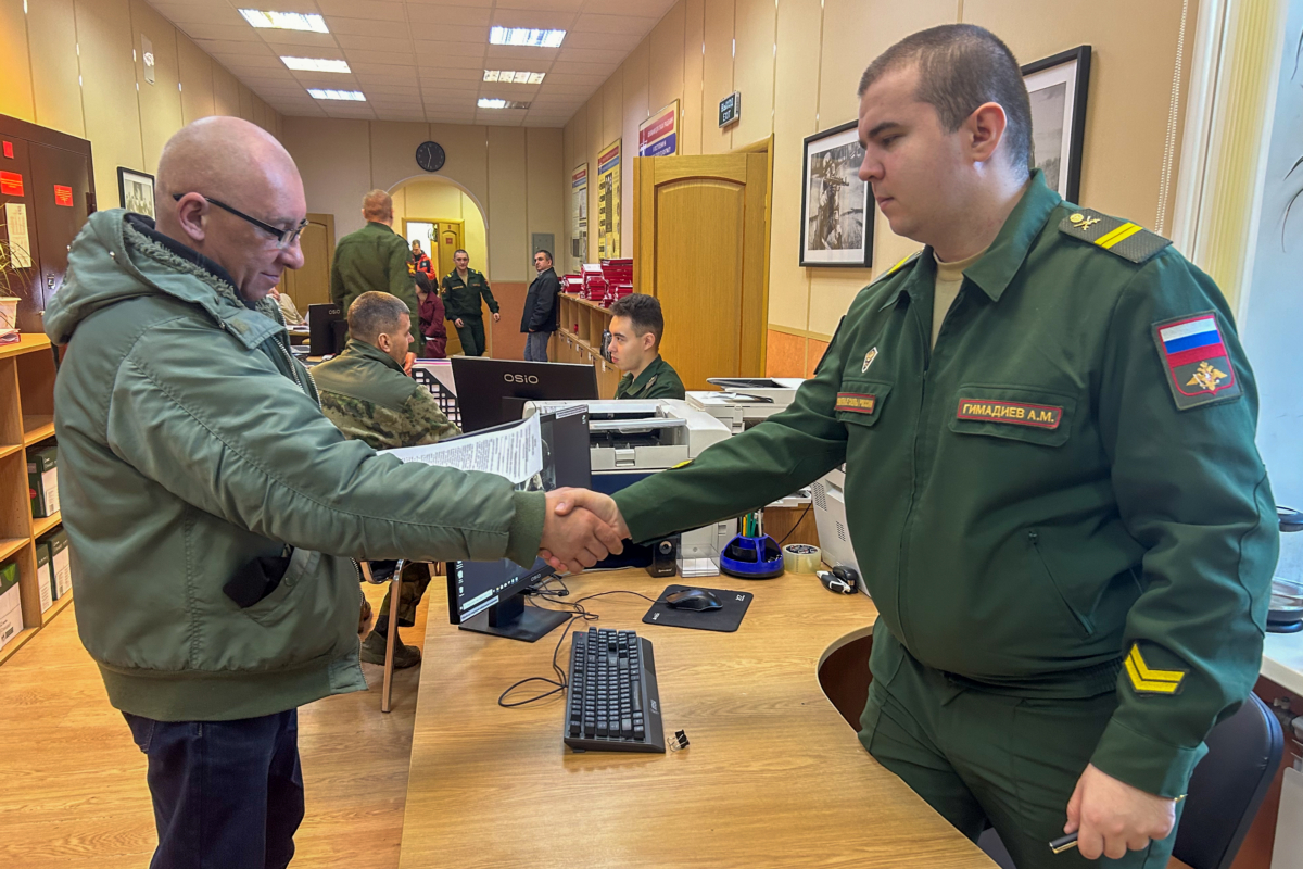 Жители Северной столицы, заключающие контракт с Минобороны России, продолжают прибывать на пункт отбора по городу Санкт-Петербург. Число желающих пополнить ряды Вооруженных Сил Российской Федерации растет, отмечают сотрудники пункта. Заключить контракт приходят не только петербуржцы, но и жители прилегающих регионов и ближнего зарубежья. Сотрудники пункта отбора информируют будущих военнослужащих, предоставляют на выбор военно-учетные специальности с учетом гражданского образования кандидата, опыта прошлого места работы и прохождения военной службы ранее. Также кандидатов информируют об условиях контракта, льготах и выплатах. «У меня сын на СВО, он также служит по контракту, оператор FPV-дронов — вот моя мотивация. В Великую Отечественную у меня оба деда воевали, бабушка до Берлина дошла. Мне в одном ряду стоять с ними — честь. Учитывая то, что я бывший военный, хоть и на пенсии, то это мой долг. Не могу я просто сидеть дома, когда такие вещи происходят в моей стране, в моей Родине»