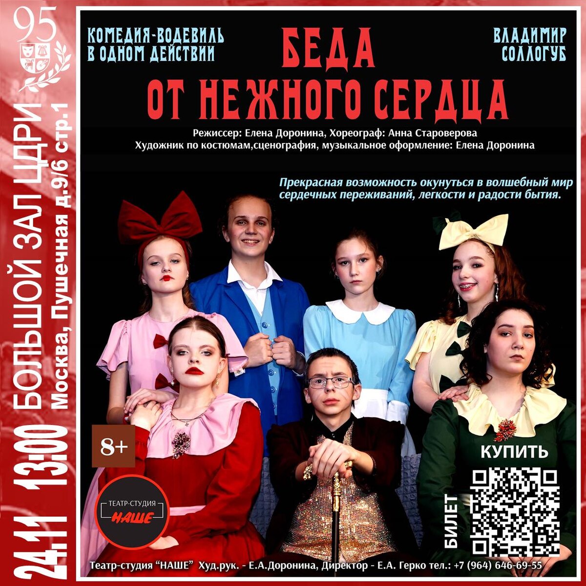 Художник по костюмам, сценография, музыкальное оформление: Елена Доронина Возрастная категория: 8+ Театр-студия «НАШЕ»
