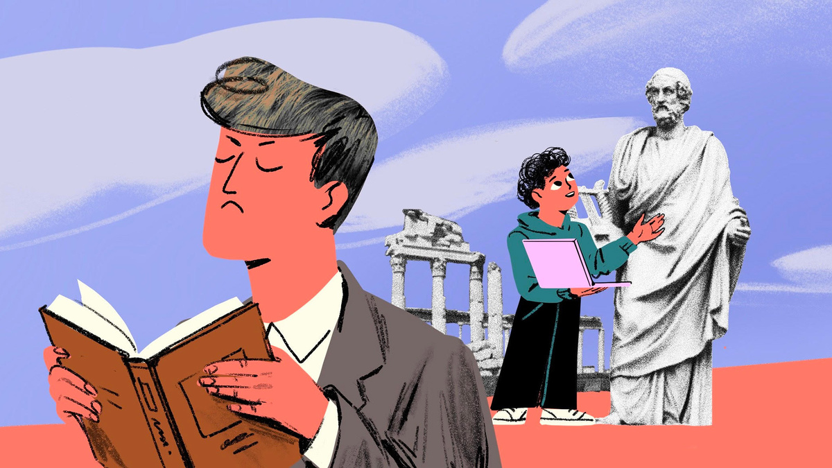 Мы почему-то упрямо мечтаем, чтобы наши дети возвышались над мельтешением повседневности с долгими и старыми текстами, забывая о том, что таким же образом мы можем возвыситься и над сгорбленной фигуркой человека с переплетенными бумажными листами в руках — этим, в сущности, новым и коротким явлением, если рассматривать всю протяженность нашей истории.