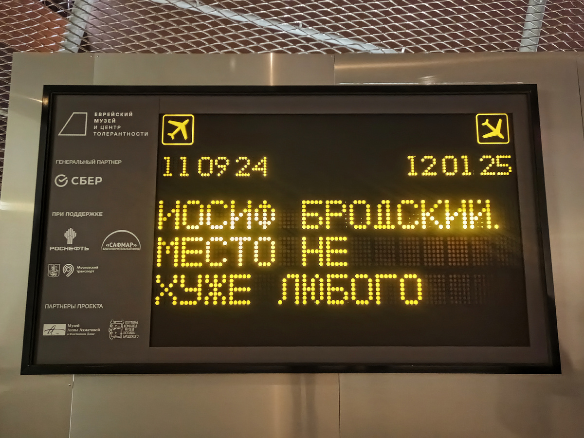 11.09.2024-12.01.2025 Иосиф Бродский навсегда покинул родную страну 4 июня 1972 года. Экспозиция впервые подробно рассказывает о реальных маршрутах Бродского-эмигранта и о его перемещениях в поэтических пространствах. Экспозиция начинается с макета ленинградских родительских «полутора комнат» на улице Пестеля, в которых Бродский прожил 17 лет и о которых он написал, что десять квадратных метров, принадлежавших там именно ему, были лучшими десятью квадратными метрами, что он знал в жизни. Среди экспонатов израильская виза и билет в Вену, книги с переводами на другие языки — творчество поэта имело успех за рубежом, фотографии, печатные машинки на двух языках и картины. Главными «местами Бродского» за границей стали: Англия, Америка, Швеция и Венеция, где поэт и был похоронен. Воссоздать портрет Иосифа Бродского помогают его личные вещи: фотографии близких людей, сборники стихов любимых авторов, открытки с изображениями разных стран и репродукциями произведений искусства. В каждом з